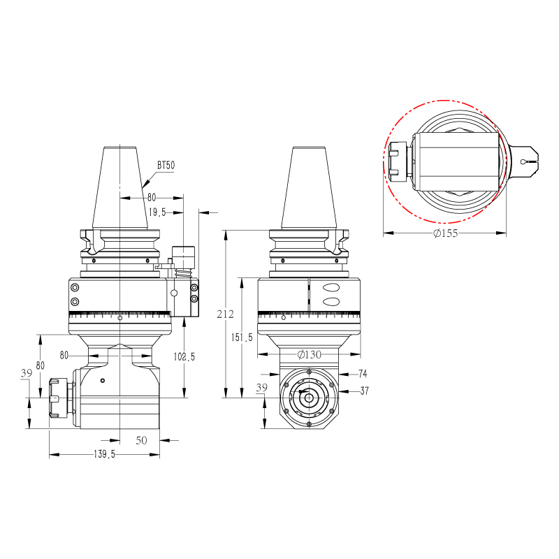 DK90-BT50-ER32-80 90度銑頭